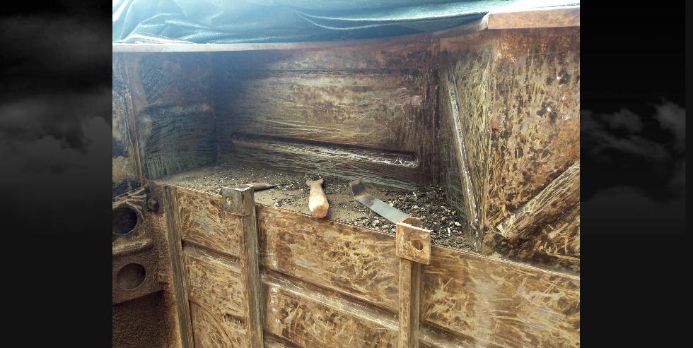 • A kincseket rejtő rozsdakupac.A bemutatásra kerülő kismotor a kép bal felső sarkában lapul a romok alatt.