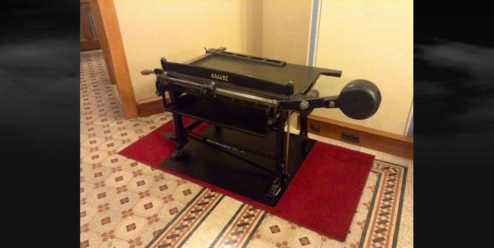 • Egy igazi ritkaság ez a Krause vágó.Milliméteres pontossággal vág ma is.A restaurálást követően a többi géppel együtt az Országház könyvtárának folyosóján lettek kiállítva.